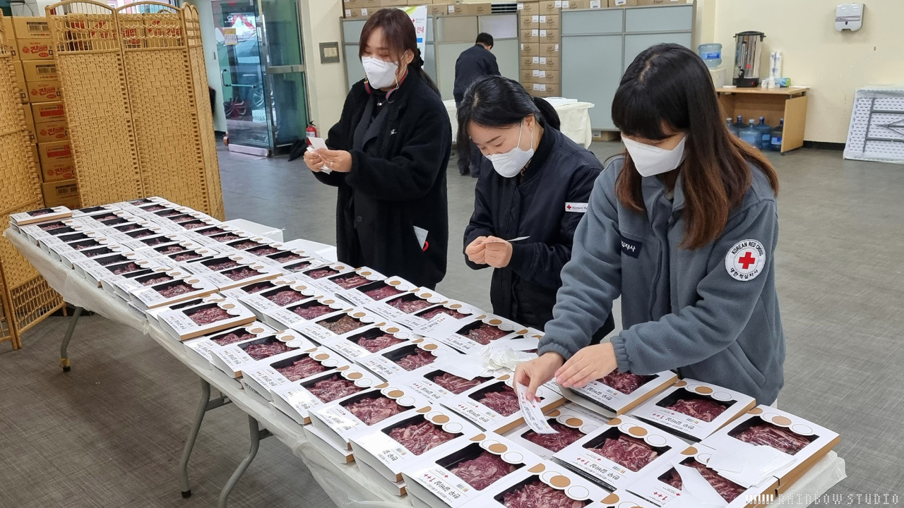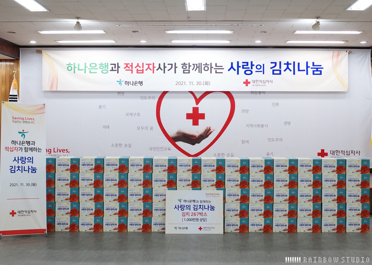 동구/서구/수성구 독거노인들에게 숙성한우 기부를 하나은행과 함께 김치 267박스  함께 기부함